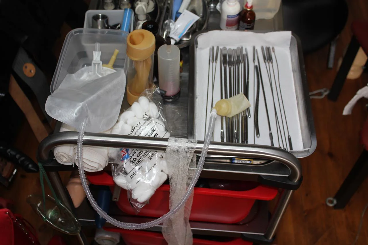 vybavení pro klinické praktiky (uretrální sondy, jednorázové katetry a klystýry, uretrální vibrátory, dilda, naf. dilda, připínací penisy všech rozměrů)